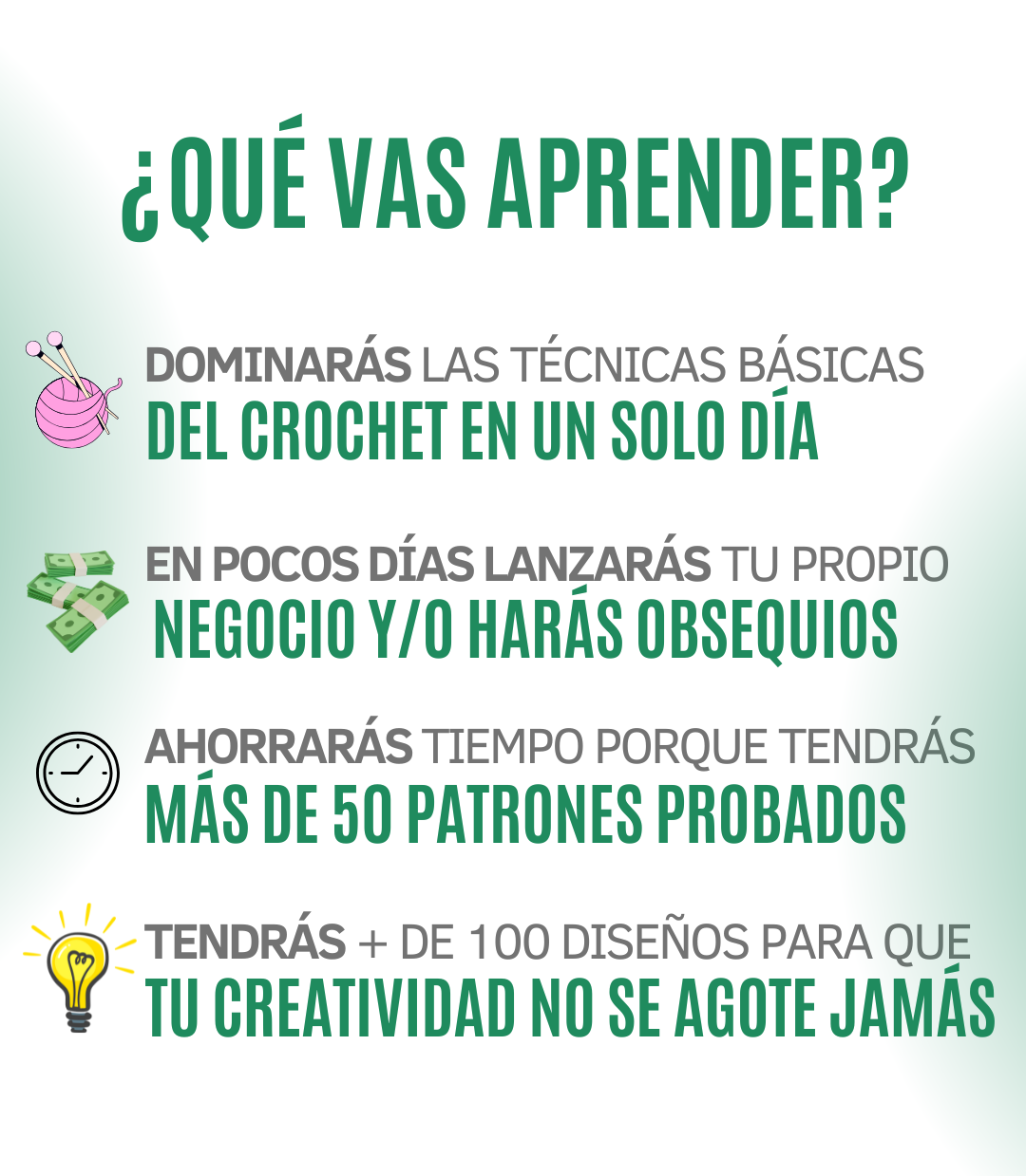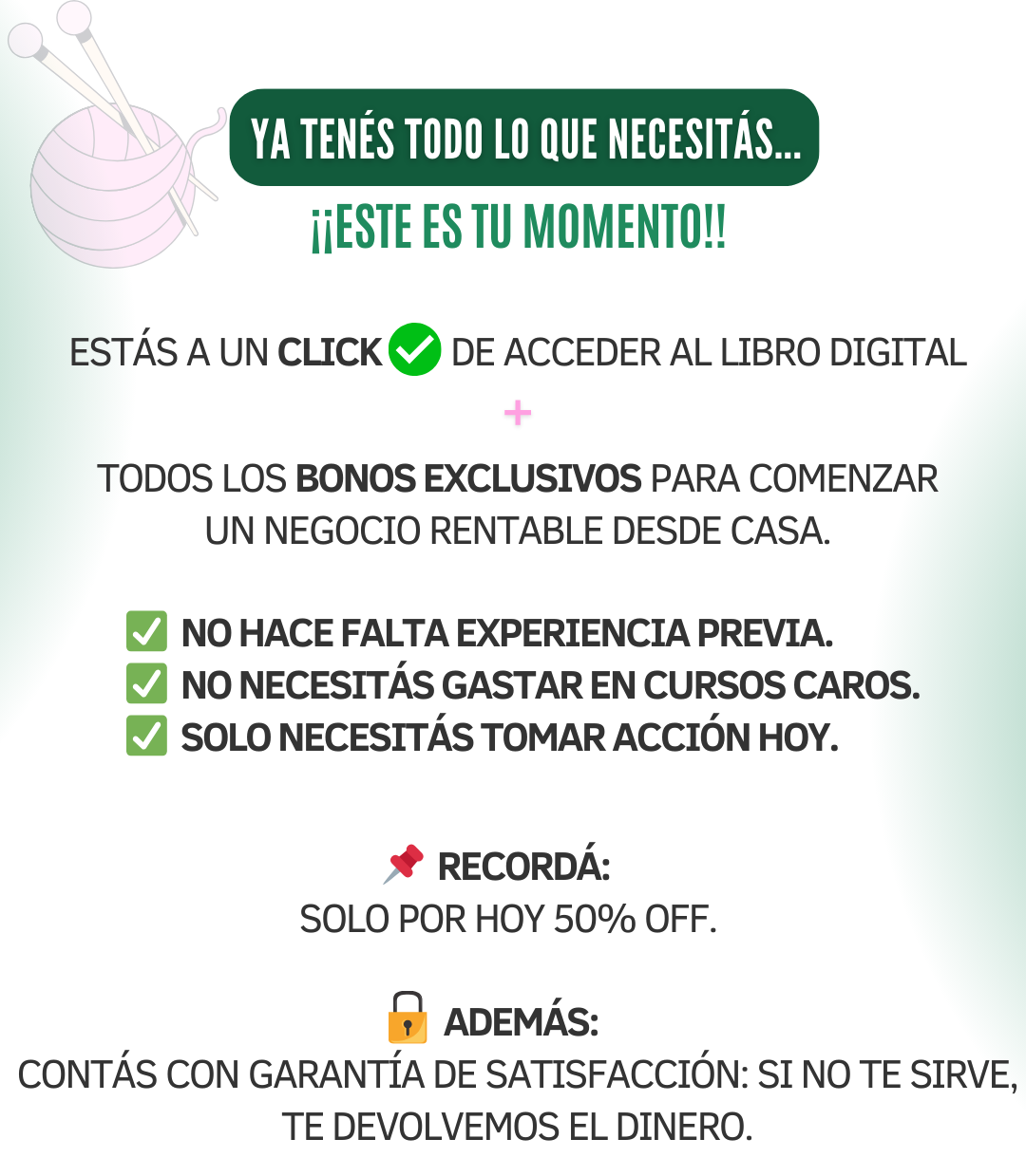 ✅ Si en 7 días no sentís orgullo al ver tu primera creación tejida, te devolvemos cada peso.