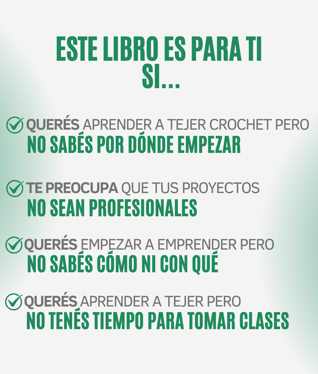 🙅♀️ ¡No! Está pensado tanto para principiantes como para expertas. Vas a encontrar explicaciones paso a paso y patrones que podés tejer aunque nunca hayas agarrado una aguja.